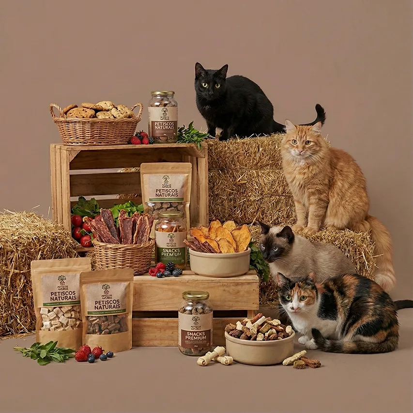 Rações de alta qualidade, snacks, acessórios, higiene e brinquedos